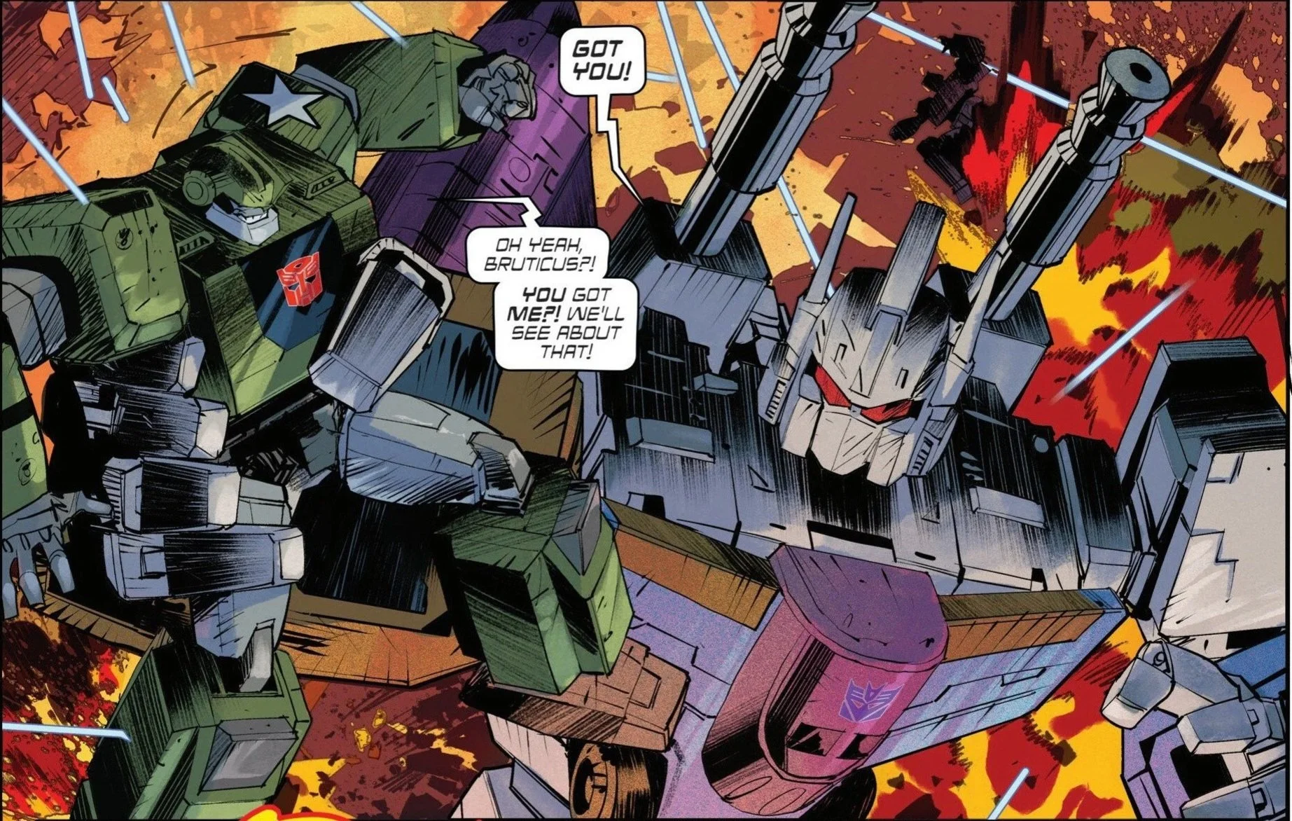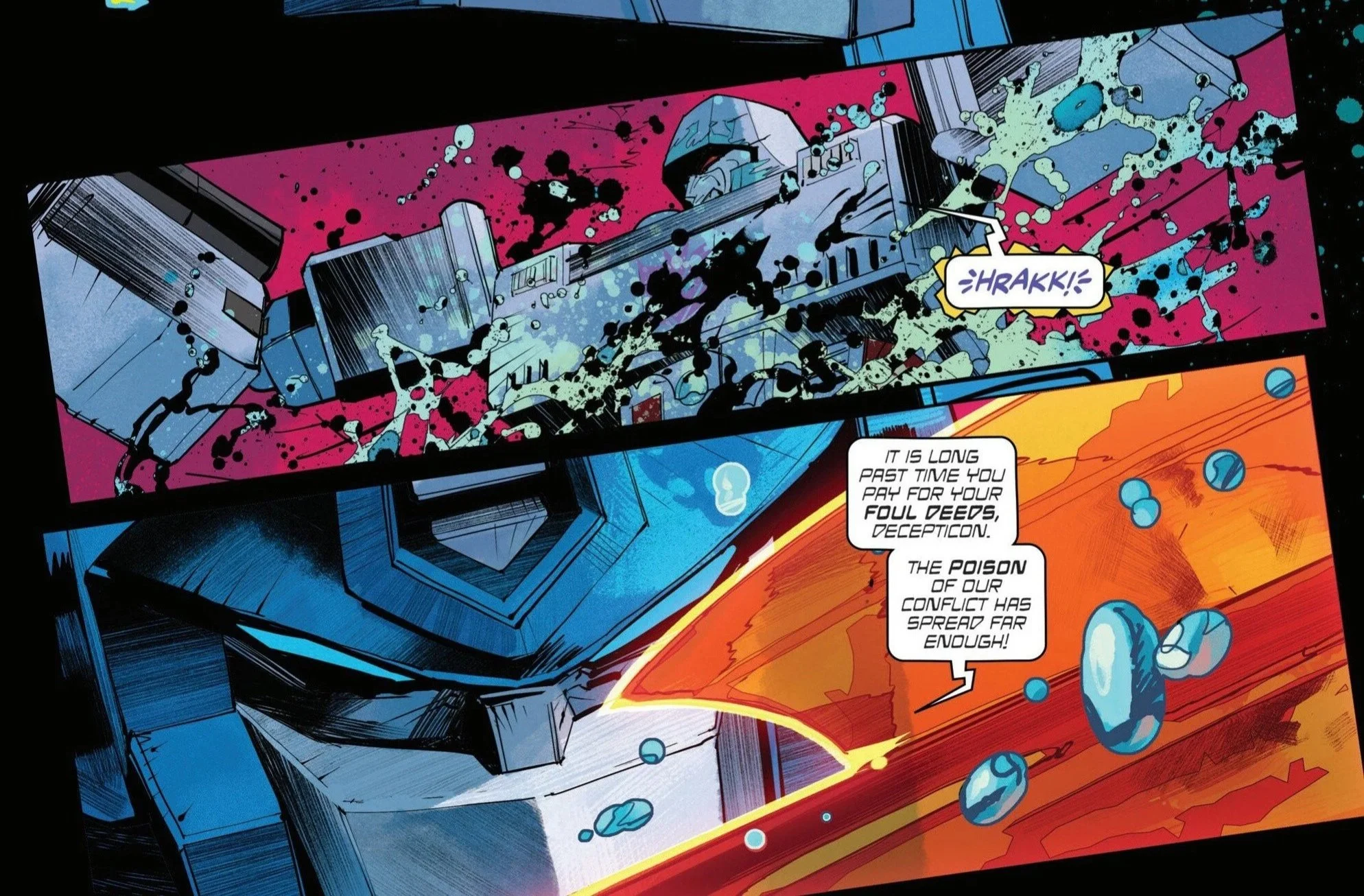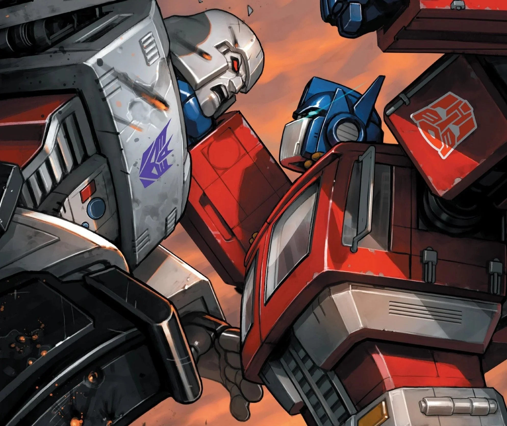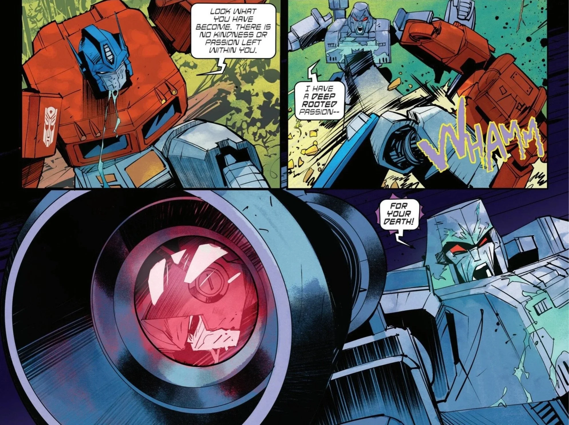 Megatron and Optimus trade harsh words and harsher blows.