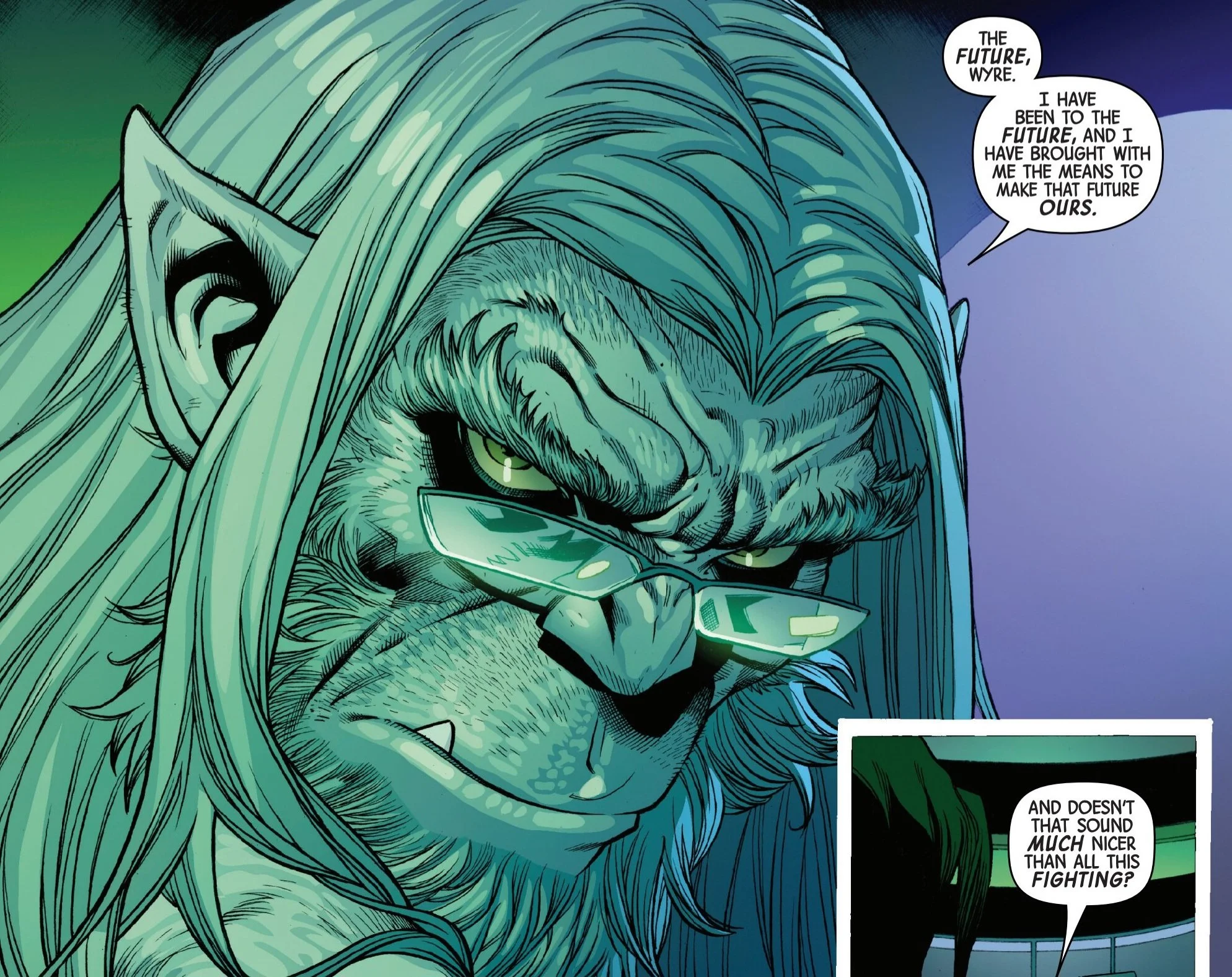 Schwarzchild of Wyre's X-Men asks beast if this future can be changed. Chairman looks at Schwarzchild and says that change will happen, he just won't be alive to see it. He orders the team to kill Schwarzchild due to him being on the X-Men's team. Not Wyre's X-Men but the ACTUAL X-Men, deeming him a traitor to 3K.