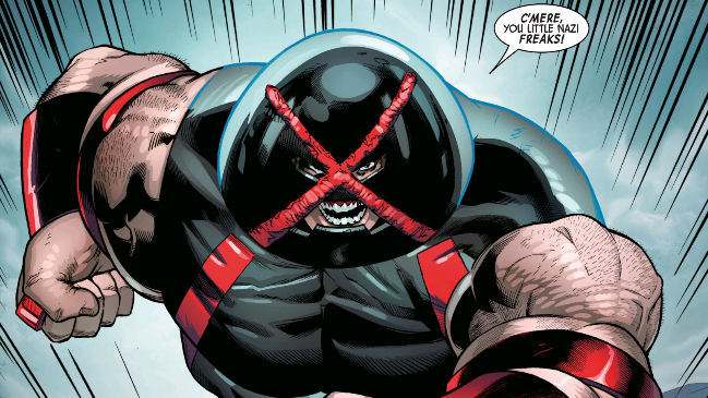 Back in current day Juggernaut is going to town destroying these new age Nazis, now with the help with Cyclops and the rest of the team.