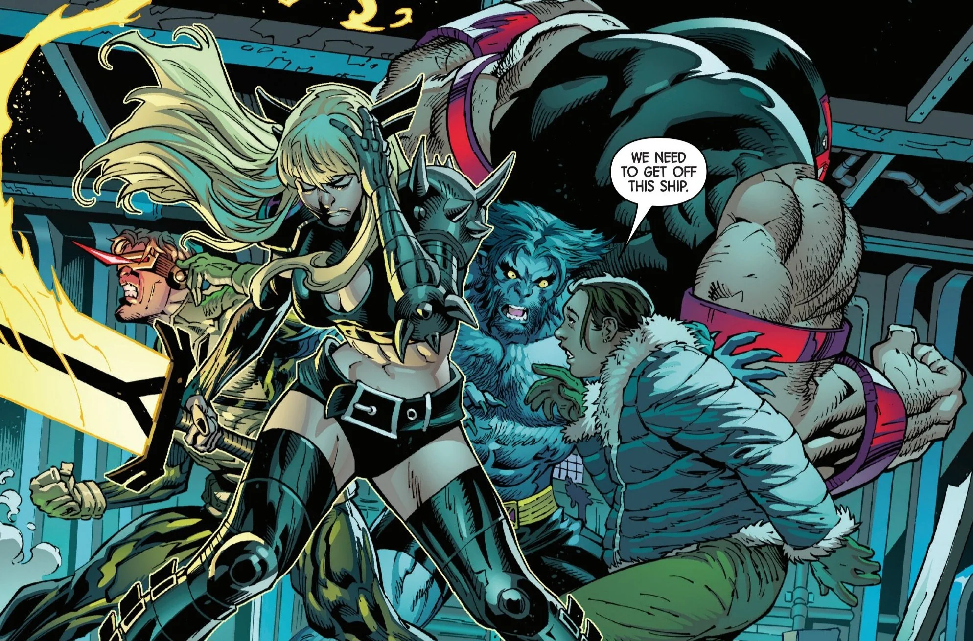 They find her tied to a chair, and what initially seems like an average rescue mission quickly turns dangerous when Magik’s powers are blocked from transporting them out.