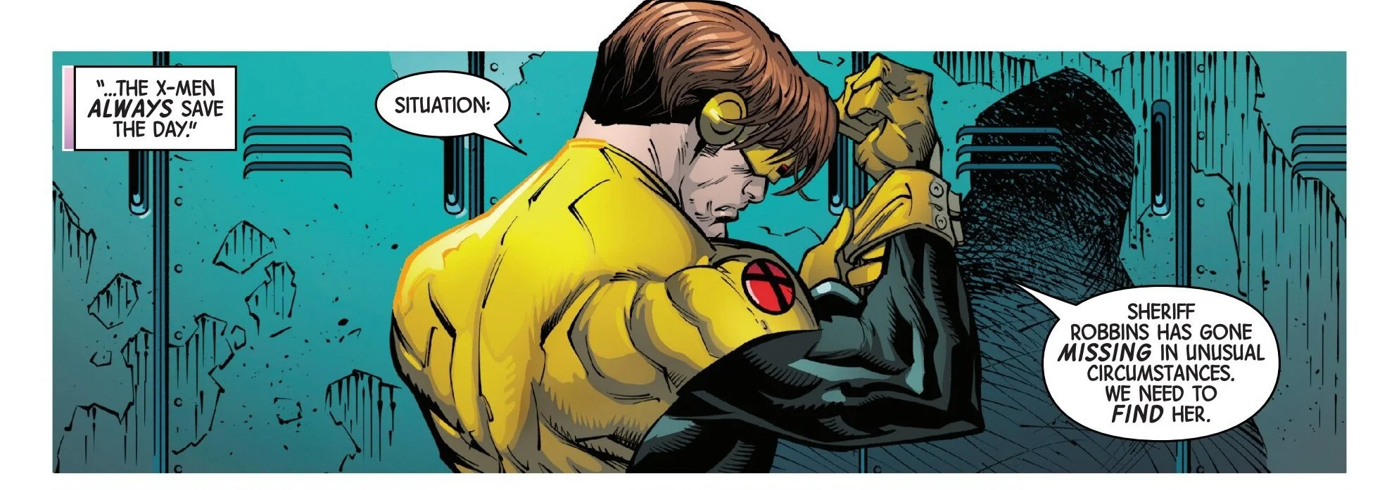 Back on the ship, the X-Men gear up for their mission to find Sheriff Robbins. Quentin gets smart with Cyclops, asking why they should care about a cop. Cyclops corrects him, reminding him that she isn’t just any cop—she’s the X-Men’s biggest ally in town, someone who fights for them when others turn against them. She isn’t merely “a cop,” but a vital asset to the team, and if she’s gone, who knows who her replacement will be?