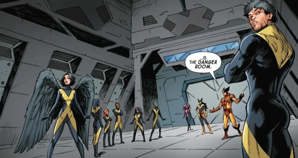 Wolverine and X-23 start class in the Danger Room, looking to train these new mutants that are joining the team. Joining them is Bronze, a mutant like Axo who was a member of the Exceptional X-Men with Kitty and Emma. They are teaching the students how to successfully block an attack.