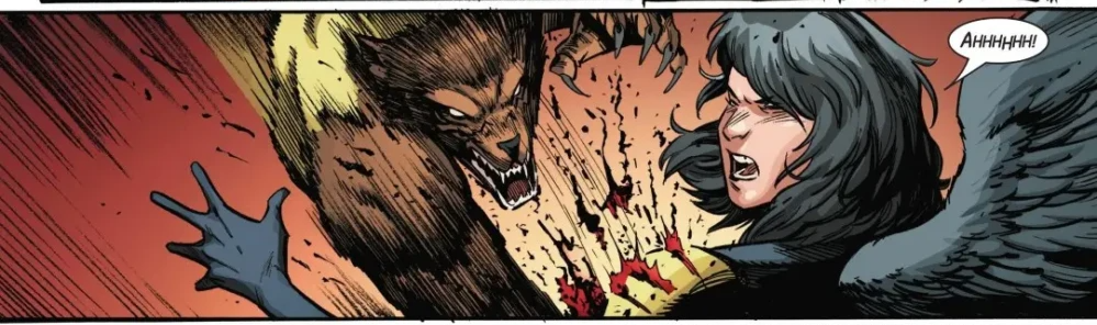 Breaking through the grasp of X-23, he claws Galura's shoulder, cutting her open and causing her to bleed. Bronze and Wolverine hold Wolf Cub back from any further attacks. These new students have a lot of learning to do.